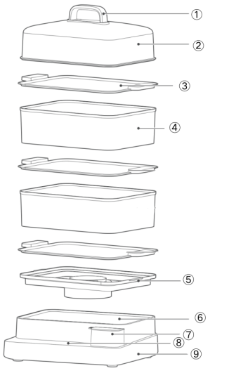 - สามารถทำความสะอาดพื้นผิวของถาด ที่กั้นสำหรับนึ่ง ชั้นนึ่ง และฝาปิดได้โดยการเช็ดเบาๆ ด้วยผ้านุ่มชุบน้ำยาทำความสะอาดที่เป็นกลาง