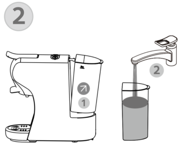 - มี 2 วิธีในการเติมน้ำในถัง: เติมน้ำในถังของเครื่องโดยตรง เช่น ใช้กาต้มน้ำ หรือถอดถังน้ำออกแล้วเติมลงไป