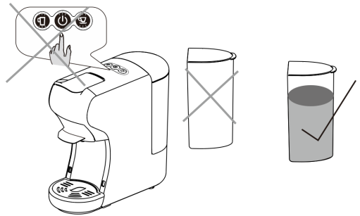 - วางแก้วขนาดใหญ่ (250 มล. หรือมากกว่า) ไว้ใต้เครื่องชงกาแฟ
