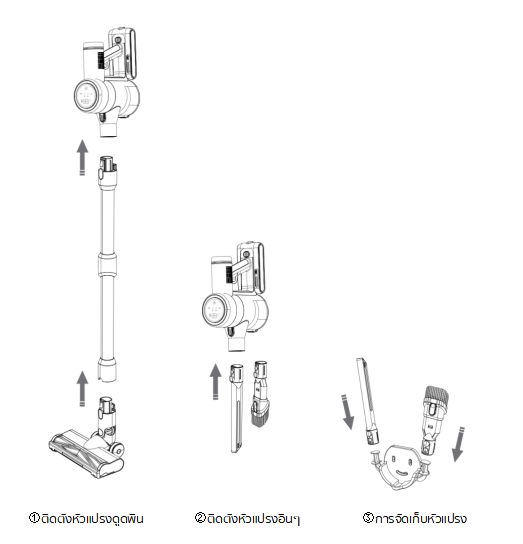 - ก่อนใช้งานโปรดตรวจสอบให้แน่ใจว่าเครื่องดูดฝุ่นมีแบตเตอรี่เพียงพอ หากใช้ครั้งแรกควรชาร์จแบตเตอรี่ 3-4 ชั่วโมง
