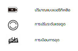 ⑦ ปุ่มปรับระดับกำลังดูด & ไฟแสดงระดับแบตเตอรี่