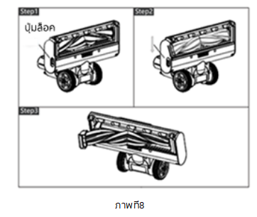 - เลื่อนปุ่มด้านข้างของหัวแปรงดูดพื้นเพื่อถอดหัวแปรงลูกกลิ้งออก (ตามภาพที่ 8)