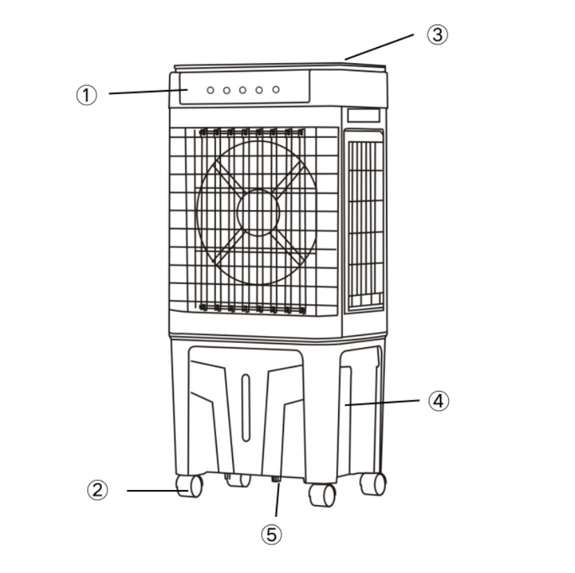 Note: When cleaning the air cooler, the device must be turned off and unplugged. Don’t put any part of the control panel into water.
