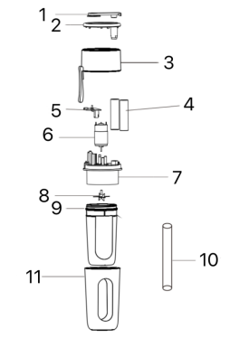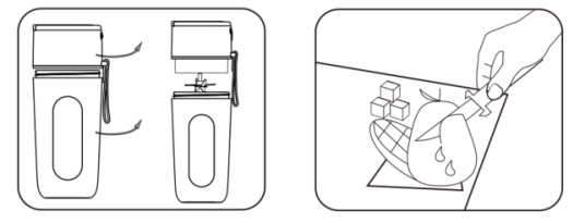- Tempat cangkir dan pisau portabel harus dikencangkan sepenuhnya untuk menghindari kebocoran air saat produk bekerja. Bahan-bahan yang dimasukkan ke dalam cangkir portabel tidak boleh melebihi batas ketinggian maksimum blender portabel.