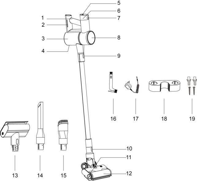 - Please make sure the vacuum cleaner has battery power before use. Charge for 3.5 hours before the first use. Press the power button to turn the machine on, and press it again to turn off.