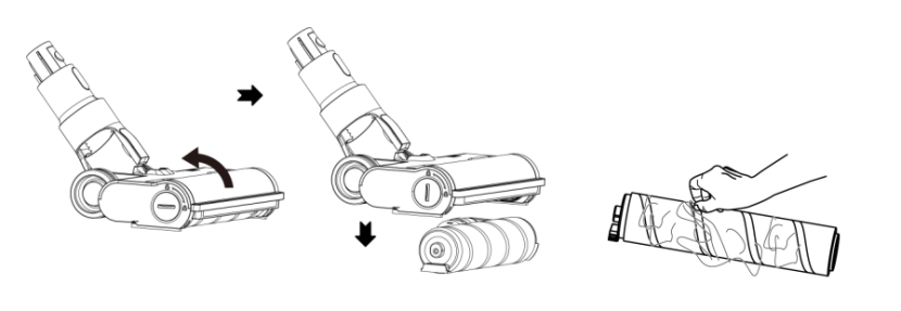 Turn off the vacuum cleaner. Rotate the brush roll cover, then remove the brush roll, and clean it.