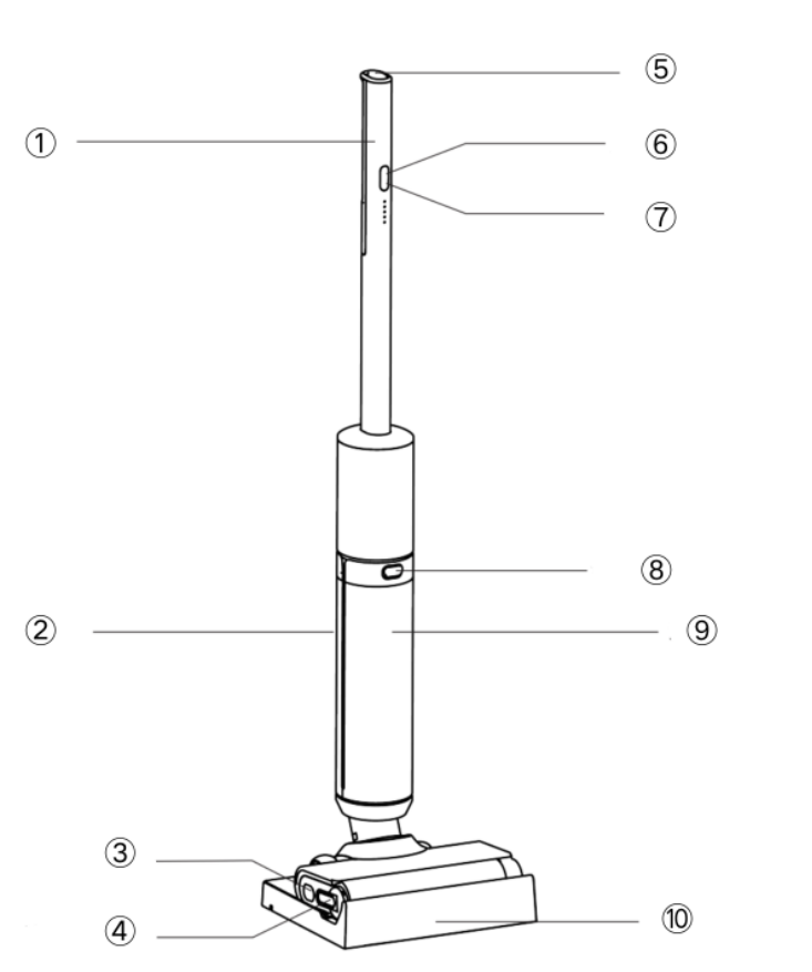 - Before use, step on the floor brush head and gently pull the handle backward until the angle with the floor is less than 90° (but not smaller than 30°) to unlock the machine. The product will not operate if not unlocked.