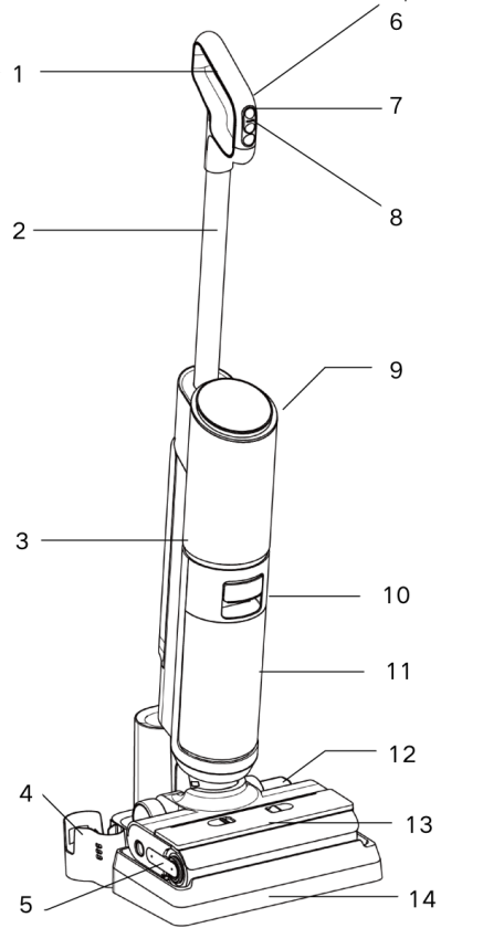 - The appliance body and the floor brush contain electric parts, and cannot be washed with water.