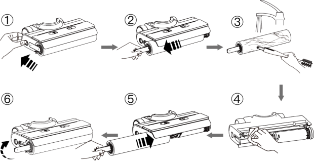 - Then rinse the roller brush with clean water.