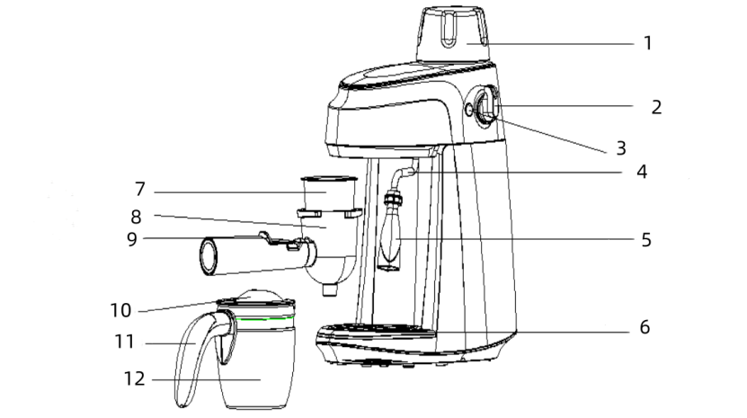 - Some parts of appliance are hot when operating (drip tray shelf,steam tube and froth nozzle and so on), so do not touch with hand directly. Only use the handle or knob.