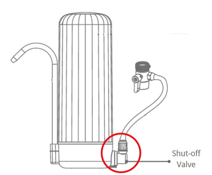 When the water distribution switch is positioned parallel to the countertop surface, purified water flows out from the water outlet of the water filter;