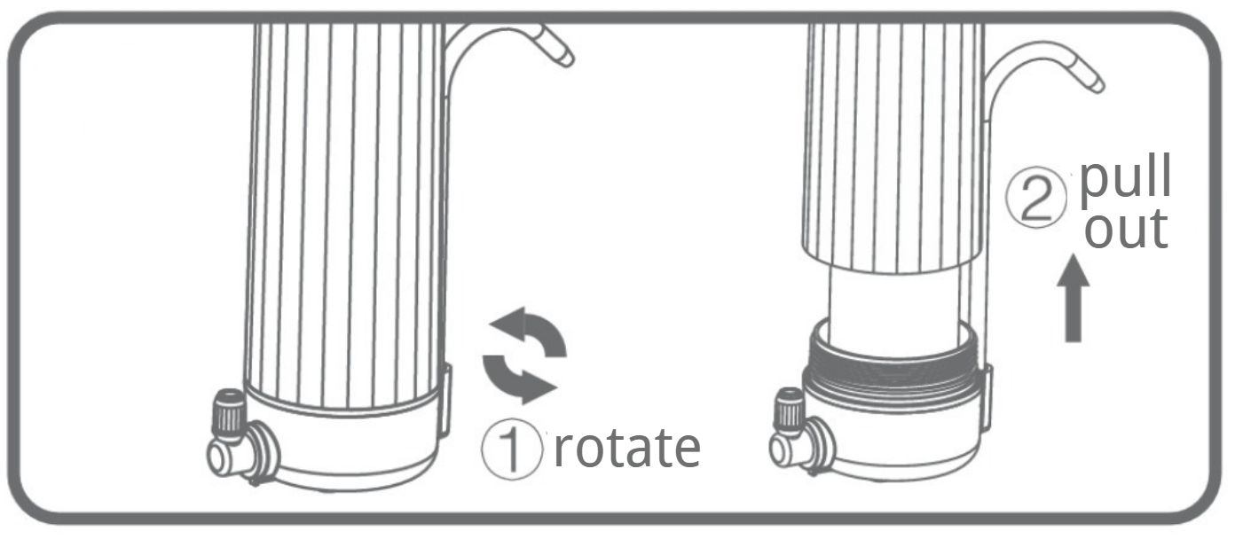 ① Rotate the filter cartridge cover counterclockwise and remove the cover from the base support.