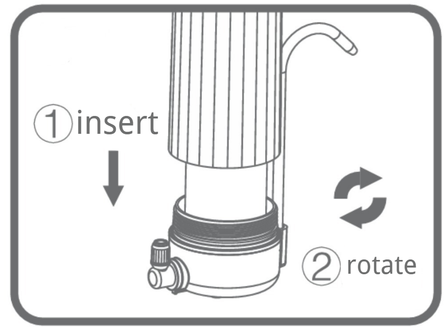 ③ Align a new filter with the filter installation port and slowly press it down until the filter is securely fixed in place. Install the cartridge cover to the base support by rotating the cover clockwise.