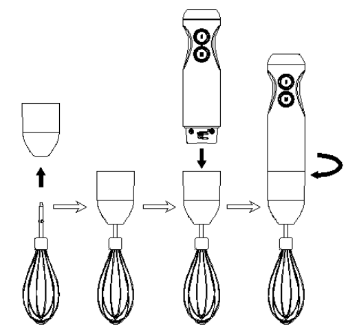 1. Cắm que đánh trứng vào bộ phận đánh trứng và khóa vào máy chính