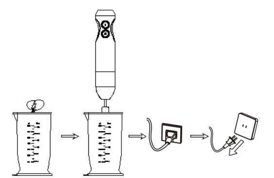- Không nhúng phần động cơ của máy xay vào nước hoặc các chất lỏng khác, điều này có thể gây nguy cơ bị điện giật