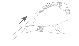 - Insert the bulge of the main suction pipe into the grooves on the left and right sides of the air inlet. Rotate it clockwise by about 45℃ until it is locked.