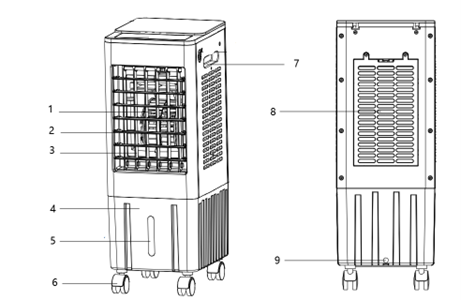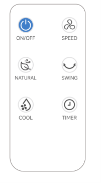 PENDINGINAN: Tekan untuk mengaktifkan atau menonaktifkan pendinginan. Pompa menarik air dari tangki, yang kemudian disaring melalui bantalan pendingin untuk mendinginkan udara.