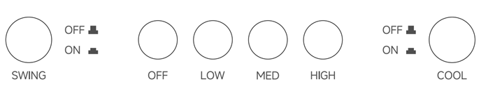 Tombol kecepatan: Tekan tombol "LOW", "MED", dan "HIGH" untuk memilih kecepatan rendah, sedang, dan tinggi.
