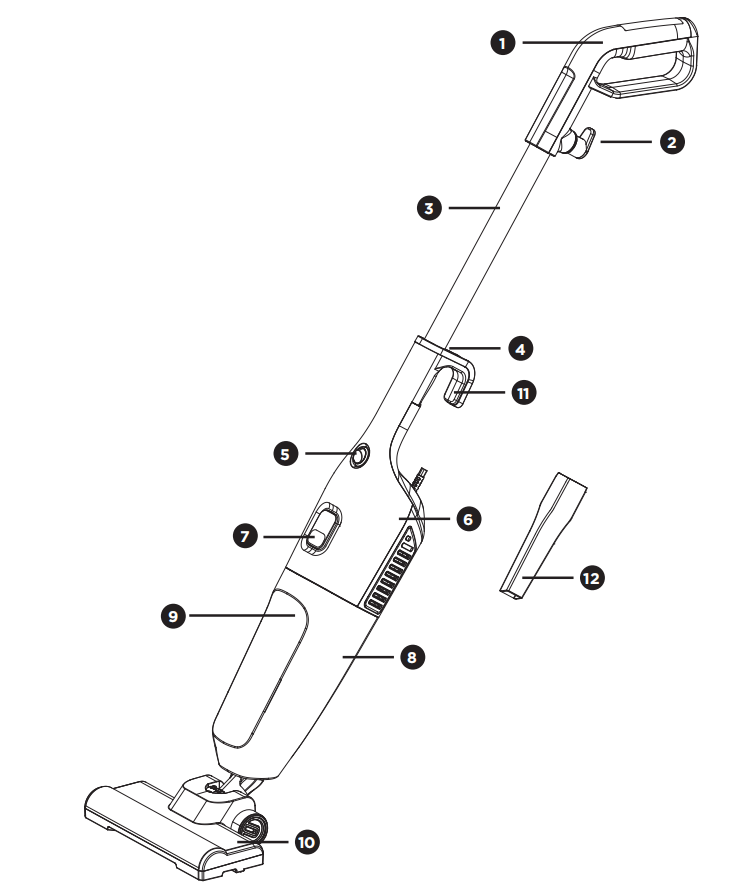 - Pasang pegang tangan ke unit utama, sikat lantai siap digunakan setelah terpasang dengan benar (untuk membersihkan lantai).