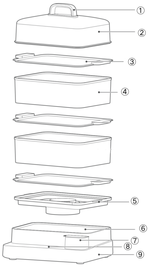 21. Saat menambahkan air ke tangki, hindari melebihi batas "maksimal" untuk mencegah air mendidih meluap yang dapat menyebabkan luka bakar atau mengganggu kinerja makanan.