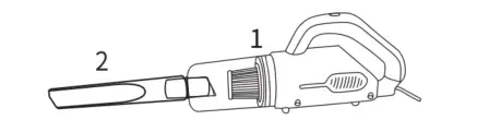 2. Cắm đầu nối (1) vào sau phần cuối, giống như miệng hút. Sau đó, hút phần phẳng (2)