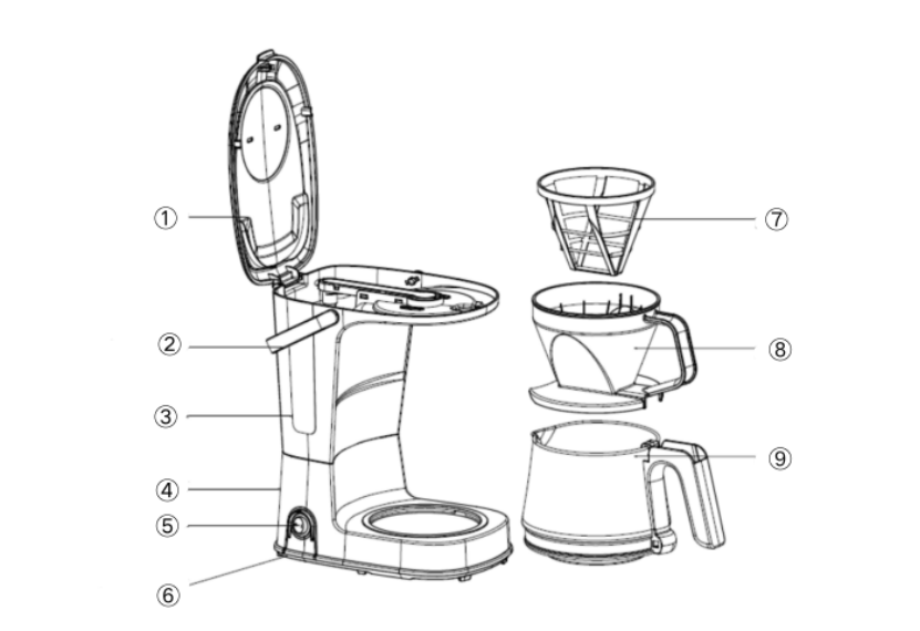 Lưu ý: Do bột cà phê sẽ hấp thụ một phần nước, vì vậy lượng cà phê bạn nhận được sẽ ít hơn lượng nước bạn thêm vào. Trong quá trình hoạt động, tránh tiếp xúc với nắp, khay giữ nhiệt, v.v., vì chúng sẽ rất nóng.