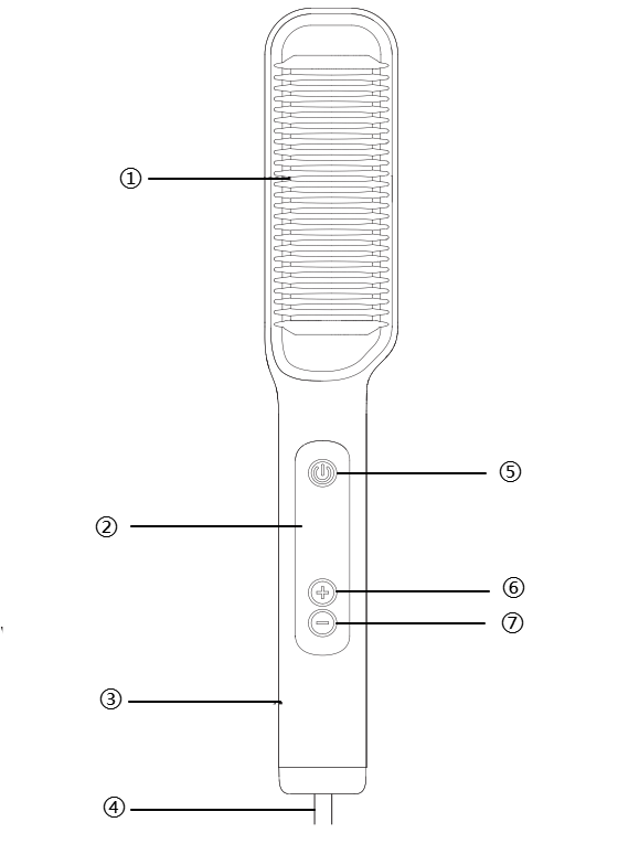 4. Setelah suhu terkunci, pegang gagangnya dan jaga jarak aman antara gerigi sisir, kulit, dan mata.