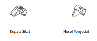 Catatan: Jika ada sumbatan, gunakan jarum kecil untuk membersihkan kepala sikat.