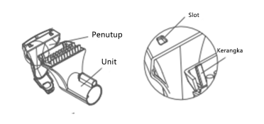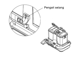 1. Pasang pengait selang ke slot pada unit utama, pastikan terpasang dengan benar.
