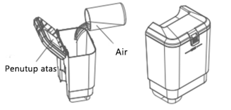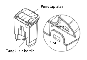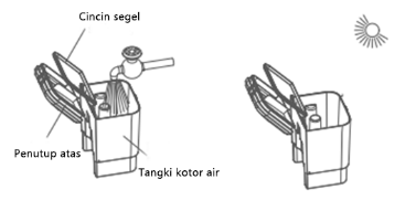 Catatan: Jangan memiringkan atau menggoyangkan tangki untuk menghindari kebocoran.