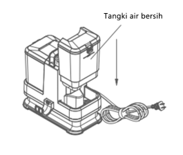 1. Pasang kembali tangki air ke unit utama. Hindari menggoyangkan tangki selama pemasangan.