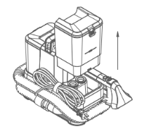1. Arahkan kepala sikat pada noda dan tekan tombol di gagang untuk menyemprot air bersih, agar noda di karpet atau kain terangkat.