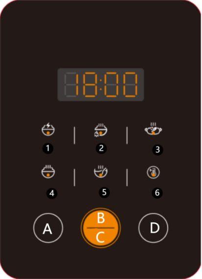 - Tombol Mulai/Batalkan: Dalam mode memasak, tekan tombol "Batalkan" untuk membatalkan fungsi saat ini dan kembali ke mode standby. Setelah memilih fungsi, tekan tombol ini untuk memulai, lampu indikator mulai akan menyala.