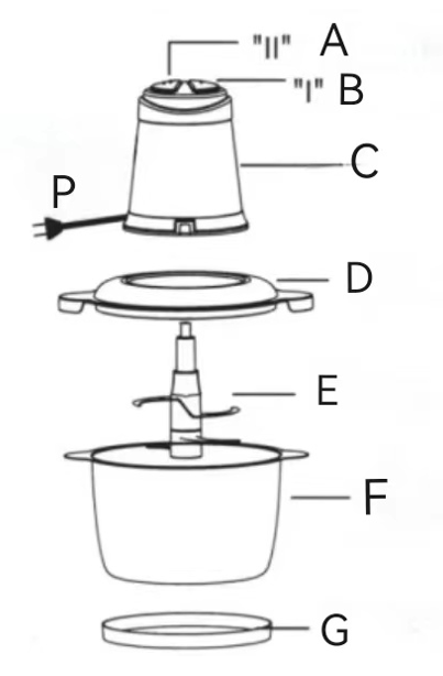 - Pegang badan dengan tangan anda, tekan sakelar (I atau II), mesin mulai bekerja, lepaskan sakelar, mesin berhenti bekerja. Waktu pemotongan harus mengacu pada panduan memotong dan memblender makanan. Konsumen dapat mempersingkat waktu pemotongan sesuai dengan preferensi mereka untuk efek pemotongan makanan.