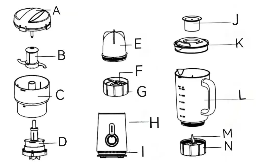 - Letakkangelaspencampur pada mesin utama, pastikan bagian cekung atas pas dengan bagian cembung bagian bawah gelas, dan kencangkan searah jarum jam.