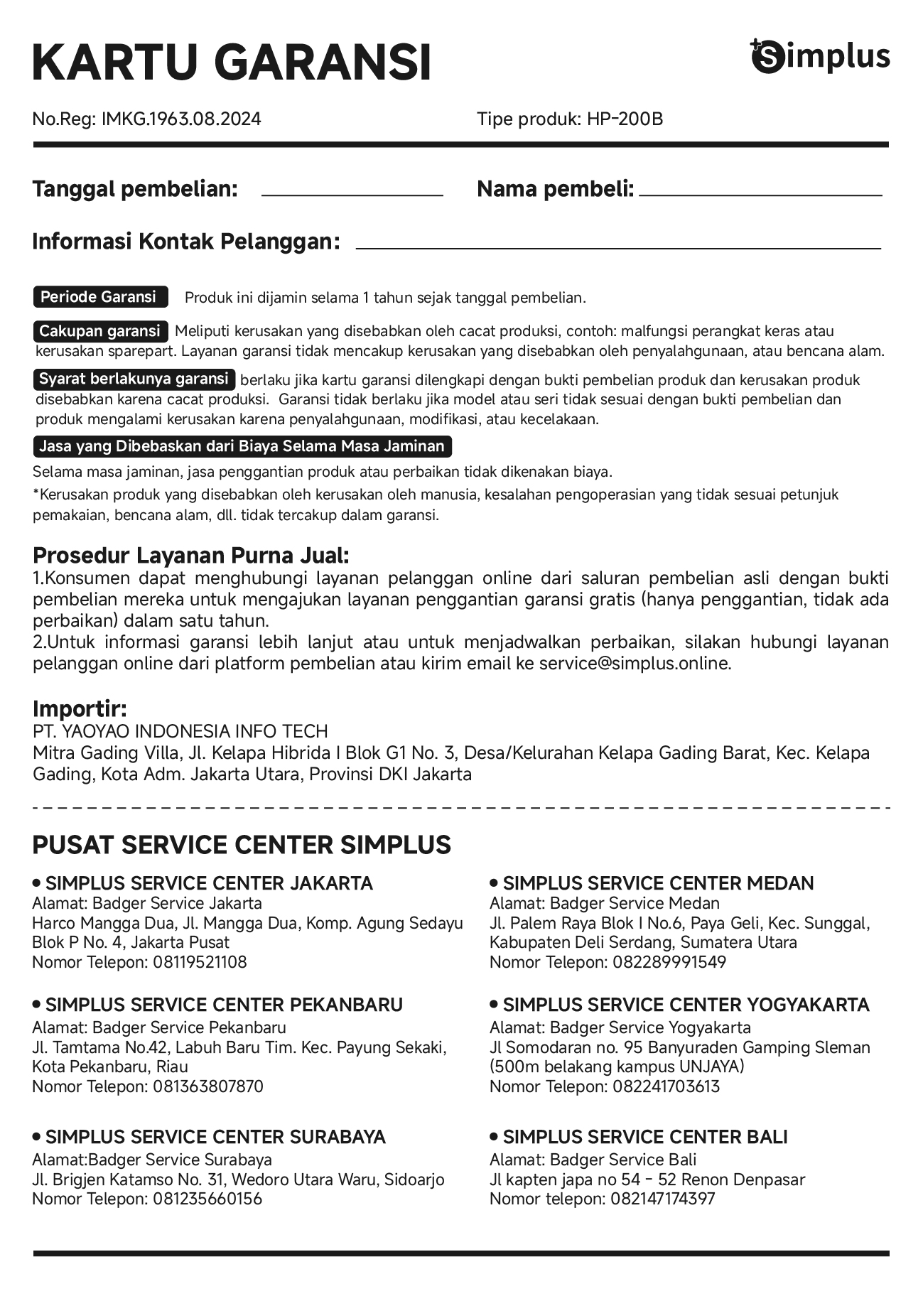 - Jika produk, adaptor atau kabel listrik rusak, harap hentikan penggunaan produk,dan jangan membongkar dan menggantinya sendiri, Segera hubungi pusat layanan pelanggan Kami.