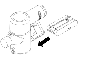 - Produk ini menggunakan baterai litium. Jika baterai rusak atau masa pakainya mencapai tanggal kedaluwarsa, harap lepas baterai dan ganti di tempat perawatan yang ditentukan oleh perusahaan. Cara mengeluarkan baterai adalah dengan memegang host dengan satu tangan dan menekan tombol pelepas baterai dengan tangan lainnya, lalu mengeluarkannya dari host (Gambar 23).