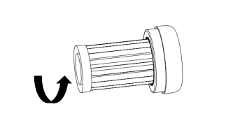 - Putar penutup stopkontak berlawanan arah jarum jam untuk melepaskan filter HEPA dari seluruh mesin(Gambar 15).