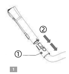 - Attaching the combi brush to the hose: ① apply with some pressure