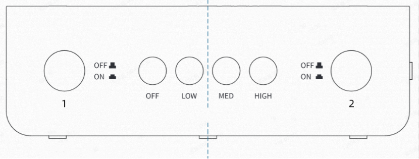 During operation, press the "TlMER" button to set the auto-off timer. Five timer settings are available: 0.5h, 1h, 2h, 4h, and 7.5h. After setting, the LED indicator will display the countdown,indicating the remaining time before the device automatically powers off.