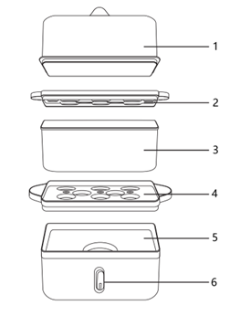 - The product is equipped with an overheat protection function. If you need to steam eggs continuously, allow the appliance to cool down properly before the second use and wait for the thermostat to reset before steaming again.