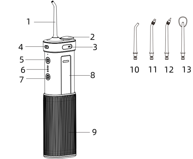 Press the nozzle plug button, remove the nozzle, clean it with water, and then dry it with a rag. The dentist recommends replacing the nozzle every six months. If the tip of the nozzle is deformed, please replace it with a new nozzle, otherwise it will cause failure.