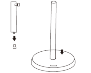 3. Install the lower steel column into the hole in the pedestal base and fasten the screw stem.