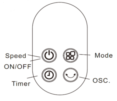 - Oscillation key: Head Swing turns on and off when pressing this key. Please don't force swing the fan head by hand, or it will be damaged permanently.