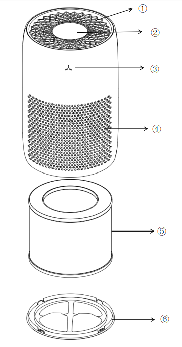 Plug in the power cord. The device sounds a “beep” and all lights illuminate for a self-check (PM2.5 indicator lights display green, yellow, and red). After 3s, it enters standby mode. All indicator lights are extinguished in standby mode.
