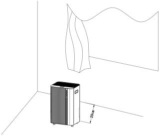 24. Do not operate the device near walls, curtains, or other objects that may obstruct air inlets or outlets. Never install this equipment where it may be affected by: heat sources such as radiators, heaters, stoves, or other heat-generating products; areas prone to oil or water splashes; direct sunlight; mechanical vibration or impact; excessive dust; poor ventilation, such as inside cabinets or bookshelves.