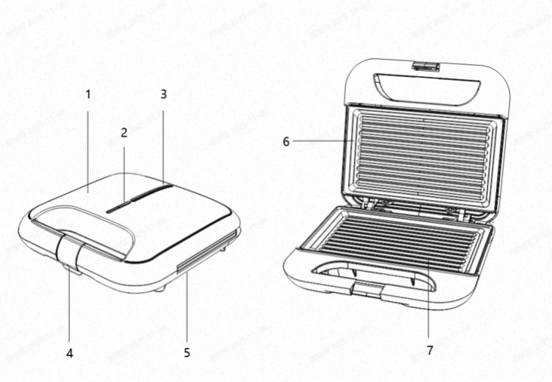 7. Use the wood or plastic tools (such as small scoop) to take sandwich out of the product. The sharp and hard metal tools shall not be used for such purpose. If you want to make more sandwiches, you can put the ingredients of the sandwich into the product after the green indicator come on again;