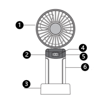 - Connect the charging cable connected to the power supply to the fan charging port. The battery number flashes during charging; The full charge display is 100%. When the fan is started, the gear is displayed first, and then the power is displayed. When the fan is turned off, the display is off.