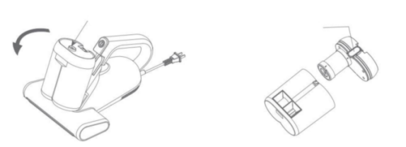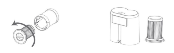 - Remove the HEPAby rotating it counterclockwise and rinse it with water.