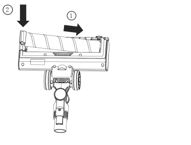 1. ตรวจสอบให้แน่ใจว่าได้ปิดเครื่องดูดฝุ่นแล้ว ,กดปุ่มปลดแปรงด้านล่างเพื่อถอดแปรง ,จากนั้นพลิกแปรงกลับด้านเพื่อให้เห็นแปรงลูกกลิ้ง